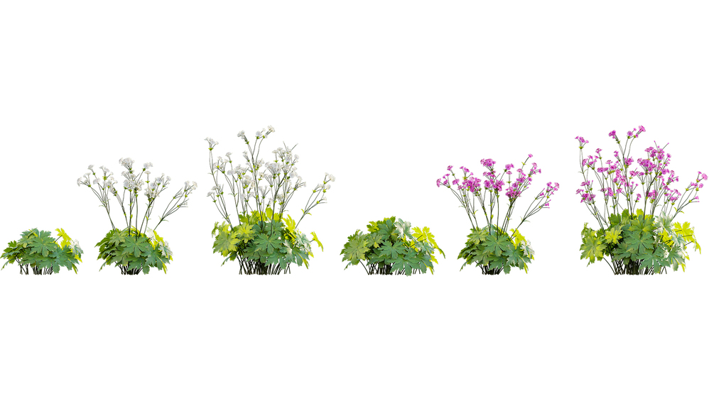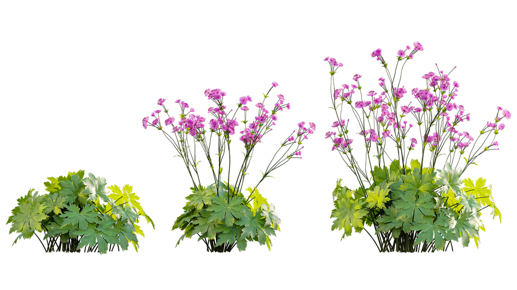 The Astrantia major – Great Masterwort product is a high-quality collection of 3D plants. It includes various variations in growth, age, and shape. This allows you to cover all stages of development, creating a complete production solution. You can easily use it with PBR materials. Additionally, we have pre-set Vray/Corona Renderer materials for 3Ds Max and GrowFX files. Our FBX format allows you to import it into any software you want to use, such as Sketchup, Lumion, Blender, Cinema 4D, and more. Furthermore, the GrowFX file allows you to customize the polygon count, height, and shape.